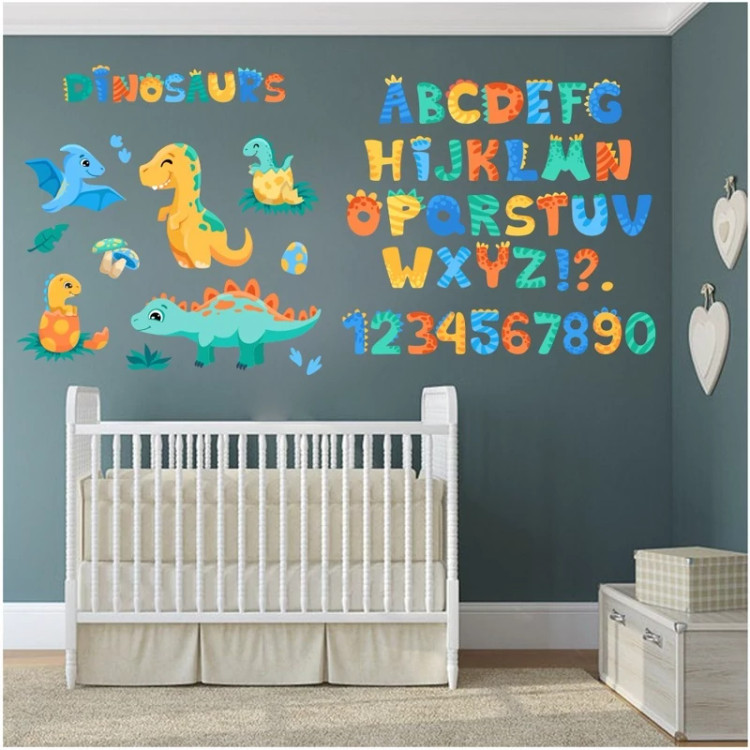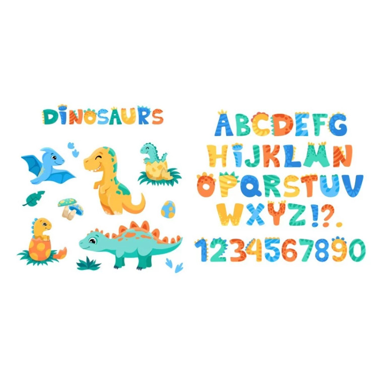استیکر دیواری کودک طرح دایناسور و الفبا