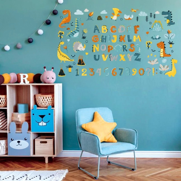 استیکر دیواری کودک طرح دایناسور ها و آتشفشان الفبا