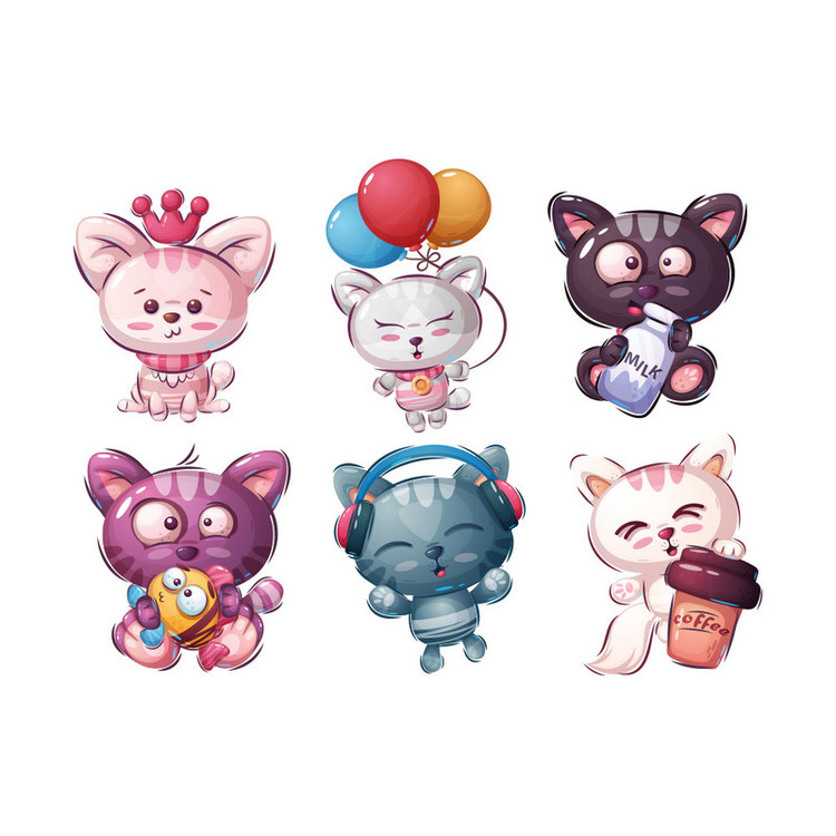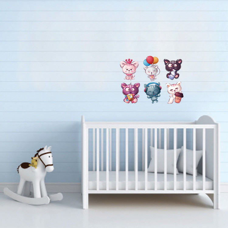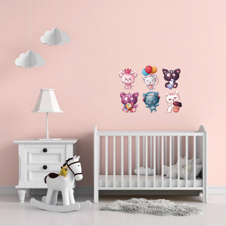 استیکر دیواری کودک مدل گربه های خوشحال hpyc مجموعه 6 عددی