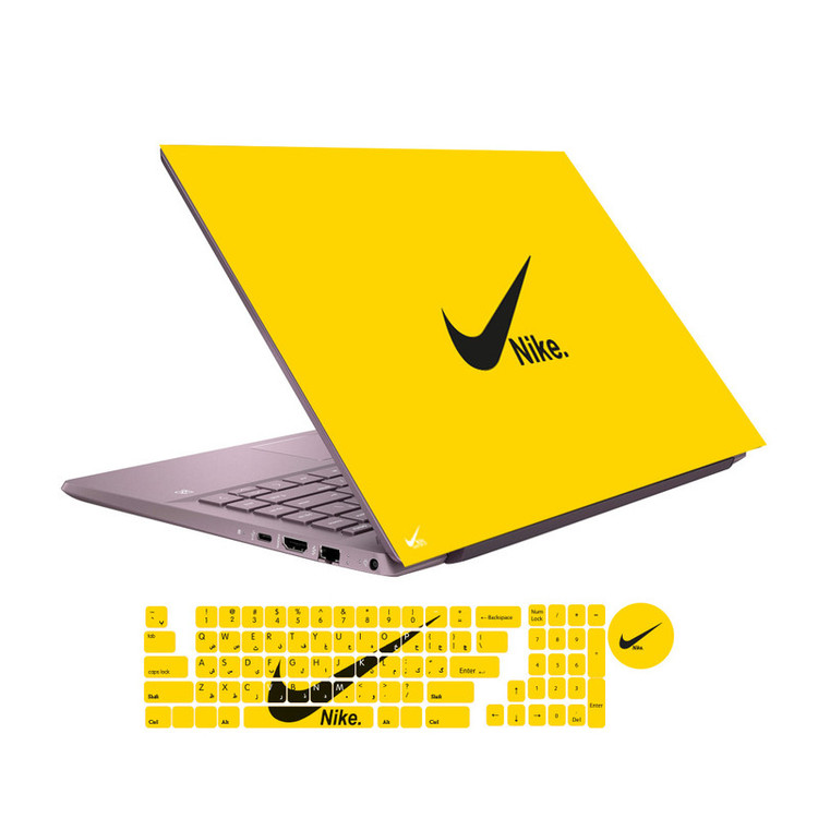 استیکر لپ تاپ گراسیپا طرح نایک زرد مناسب برای لپ تاپ 15 اینچی به همراه برچسب حروف فارسی کیبورد