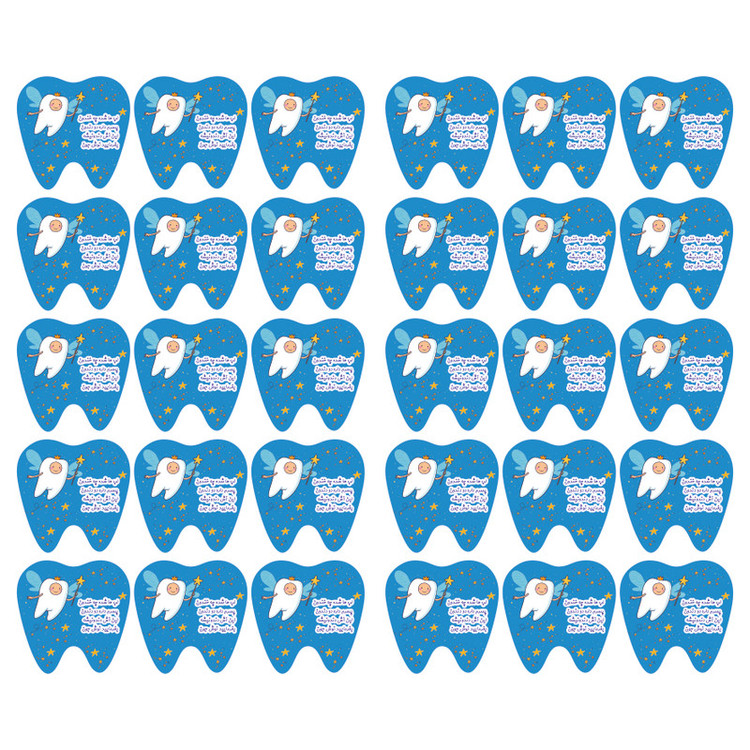 لیبل پشت چسبدار کاغذی طرح دندونی پسرانه یکی از پرطرفدارترین نوع استیکر و لیبل می باشد که مناسب برای زیباتر شدن و خاص تر بودن بسته بندی های جشن دندونی نوزاد شما می باشد. لیبل های مدل دندونی شامل پک 30 عددی لیبل کاغذی به قطر 6 سانتی متر می باشد. که به راحتی میتوانید برای چسباندن روی ظروف و لیوان جشن استفاده کنید.